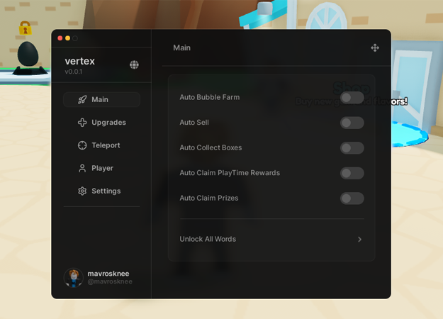 Vertex is a high-performance Auto Farm script made specifically for Bubble Gum Simulator Infinity on Roblox, giving players a powerful advantage in grinding and progression. With Vertex, you can automate tasks like collecting coins, farming bubbles, hatching pets, and more, all without lifting a finger. Its clean and intuitive interface makes it easy to set up and customize to fit your playstyle, whether you're looking to farm casually or rise to the top of the leaderboards. Vertex ensures a smooth and efficient gameplay experience, helping you unlock rewards faster and enjoy the game without the repetitive grind. Ideal for both beginners and experienced players, this script is your go-to tool for dominating Bubble Gum Simulator Infinity.